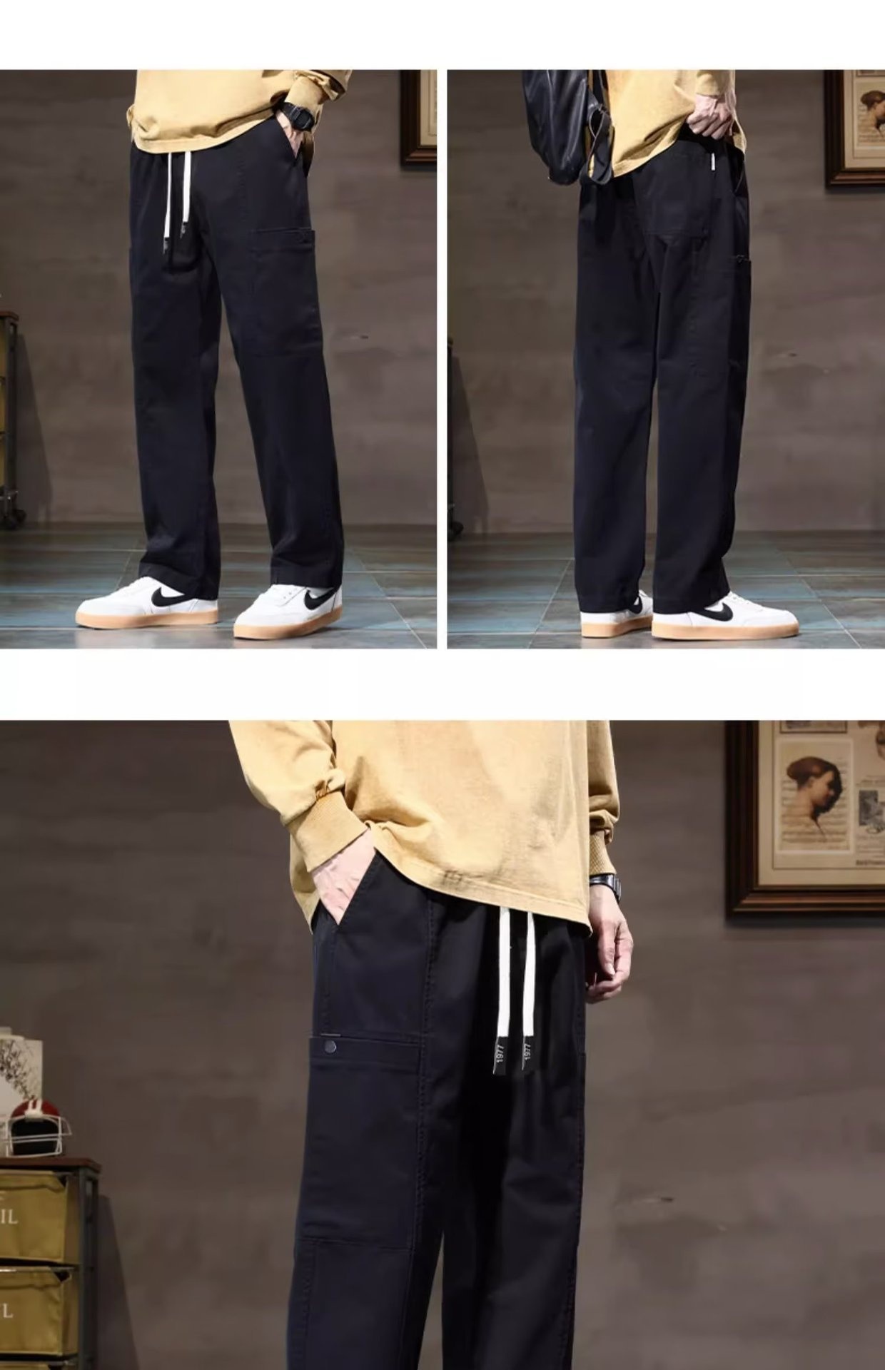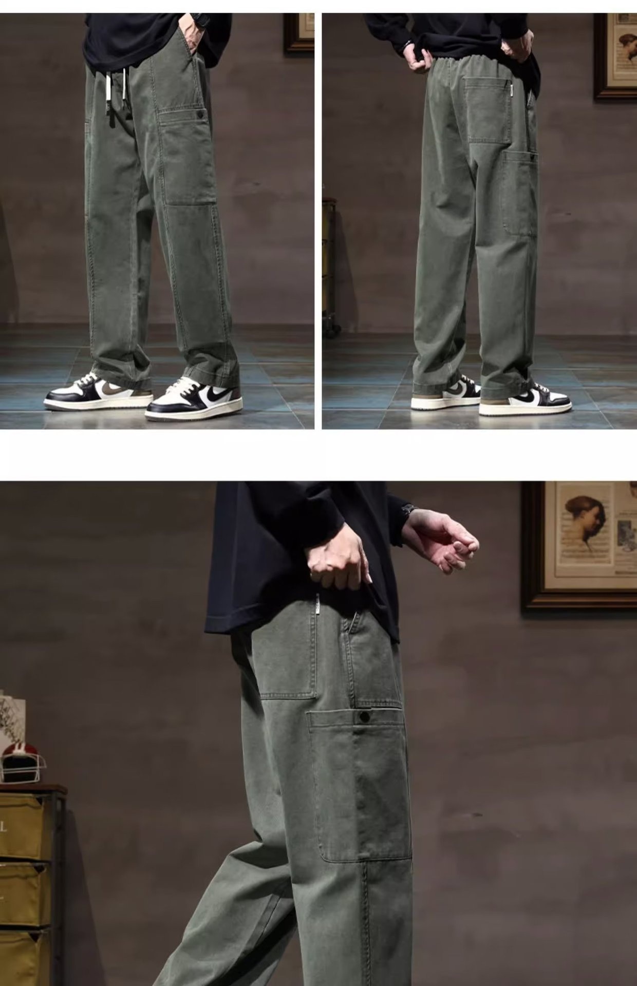 Mens Trendy Slim-fit American-style High-street Loose Straight-leg Wide-leg Pants