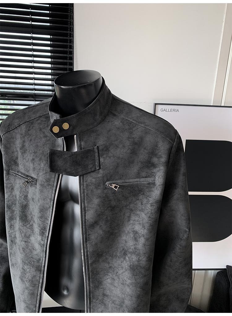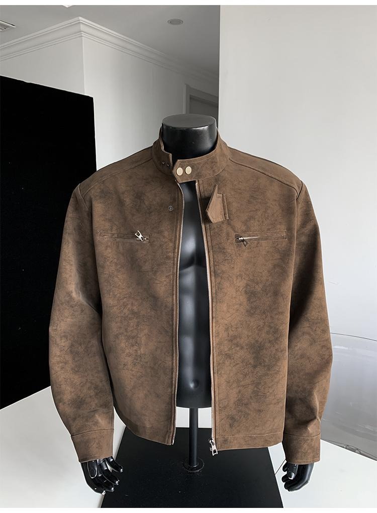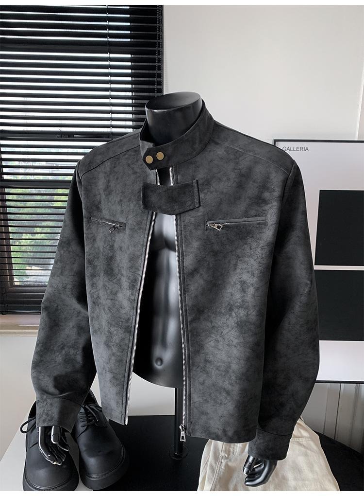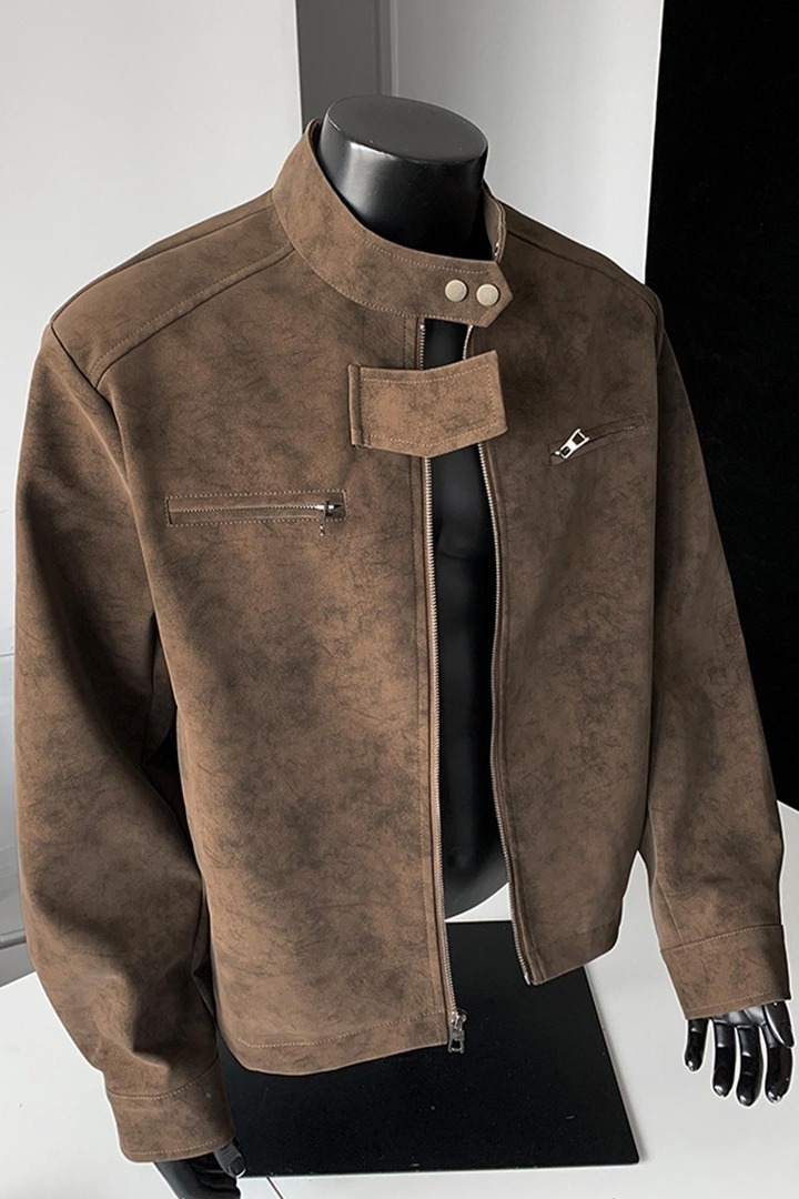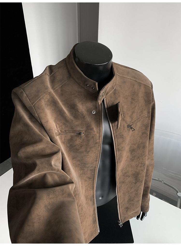 Vintage PU Leather Stand-Up Collar Biker Jacket