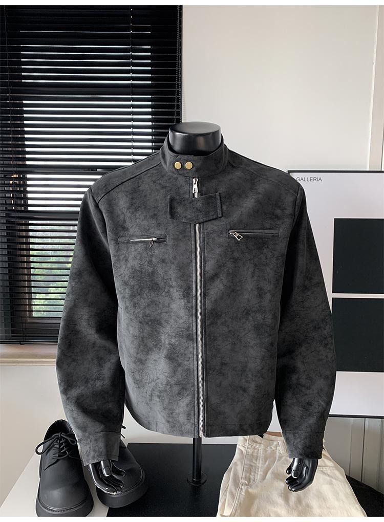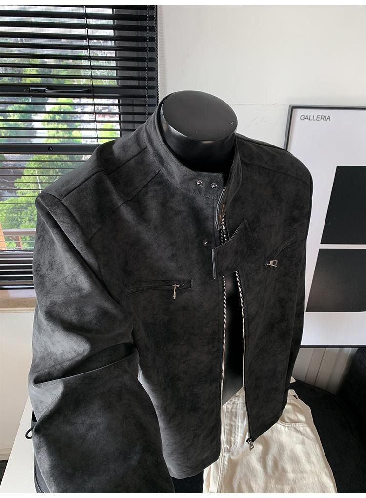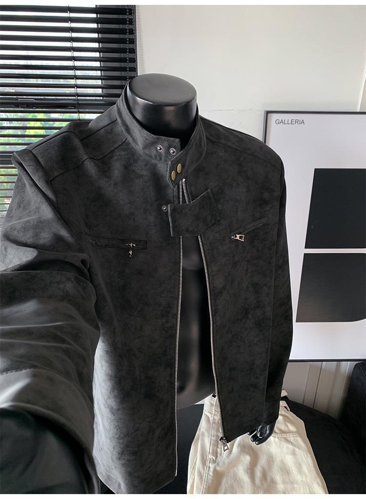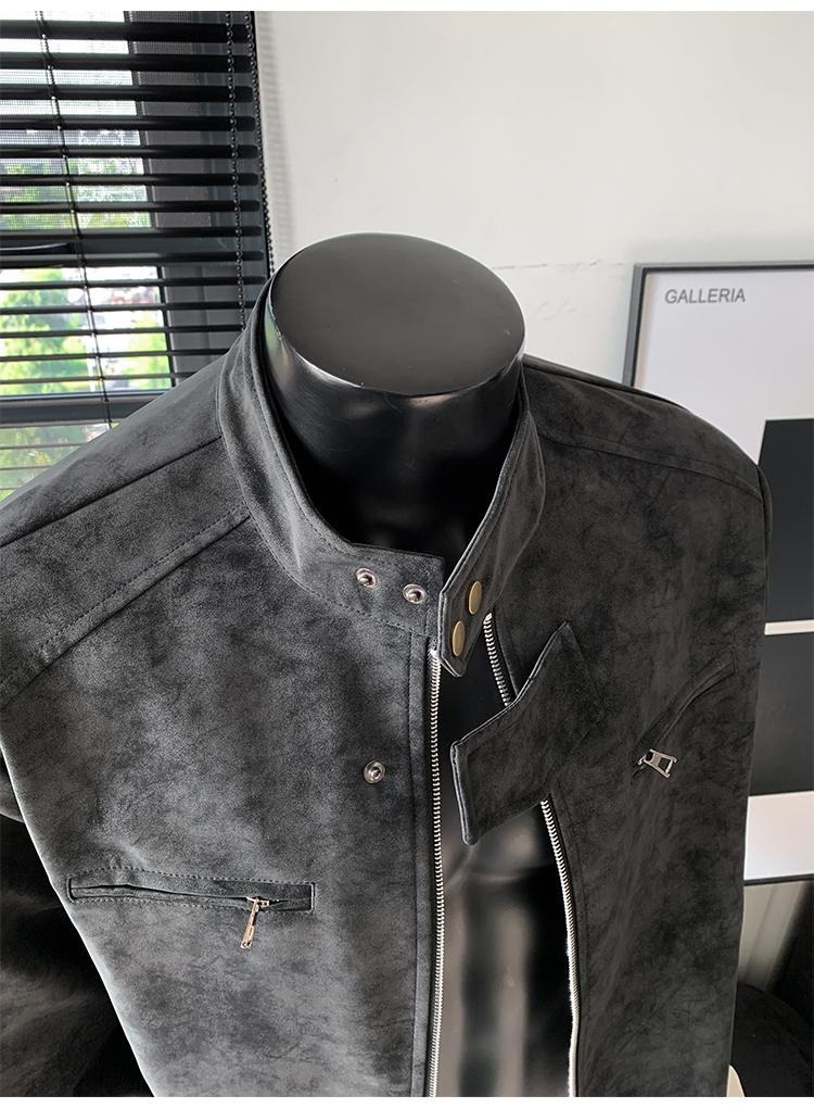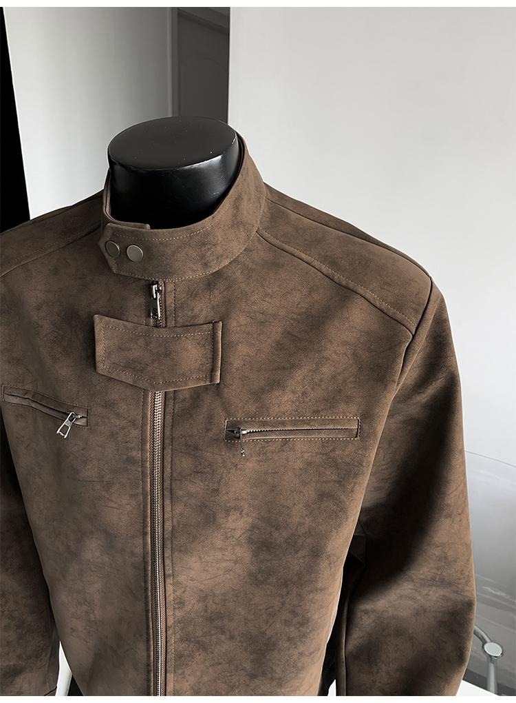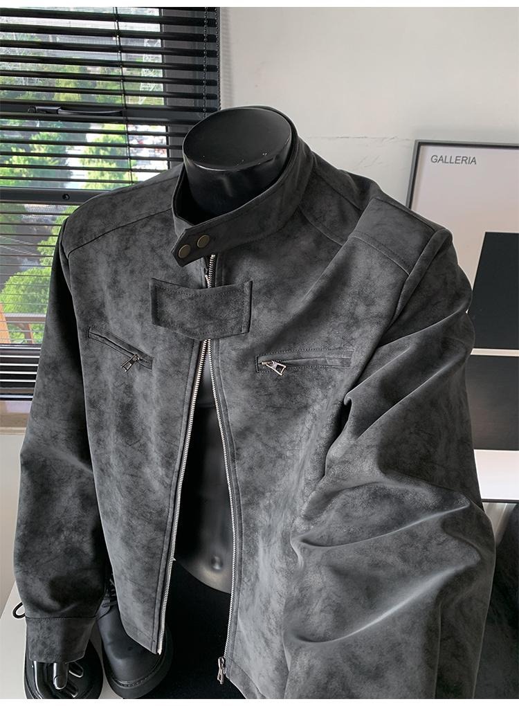 Vintage PU Leather Stand-Up Collar Biker Jacket